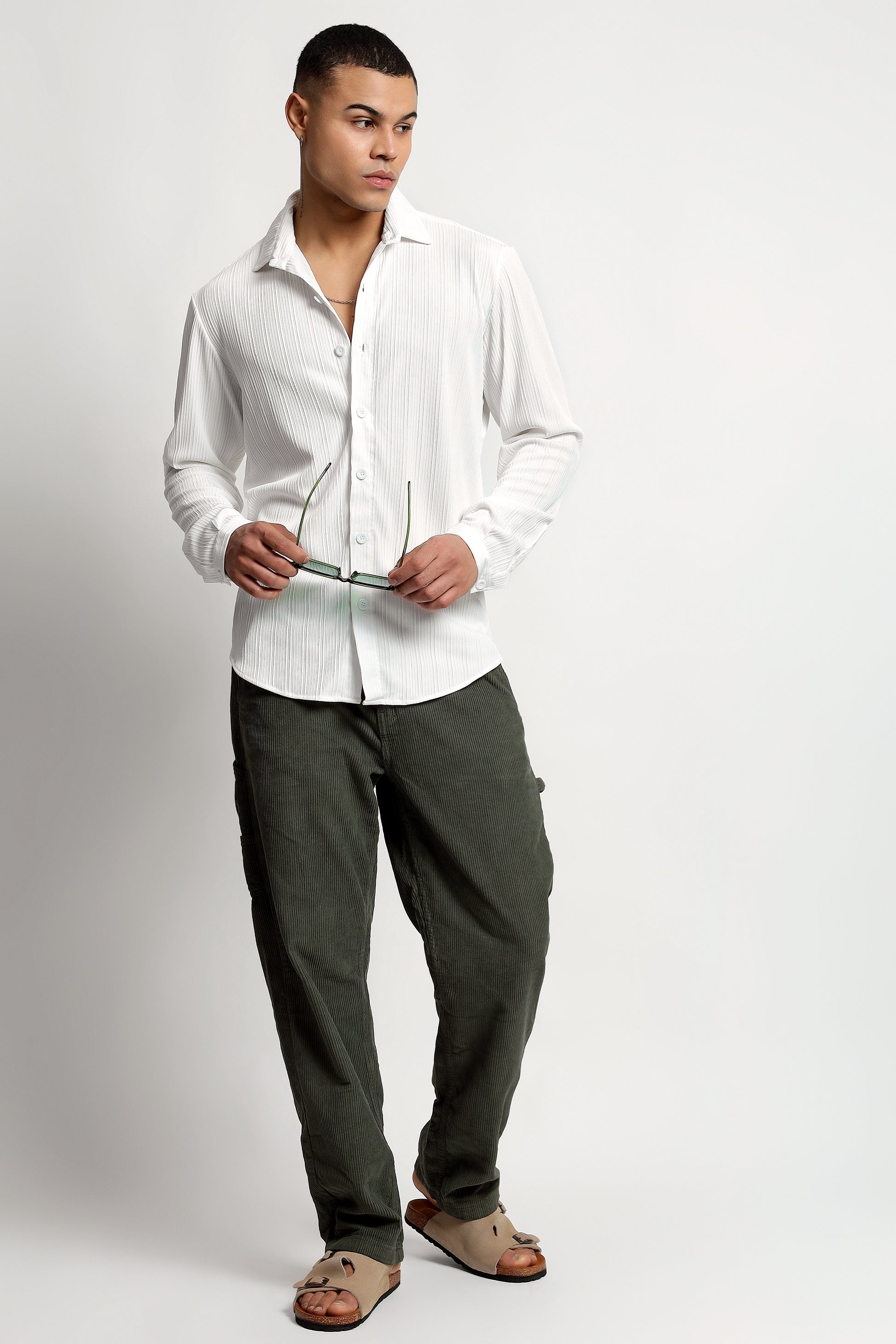 Elevate your look with the Mudih Men’s Textured Vertical Stripes White Shirt. Made from a premium polyester/lycra blend, this shirt features a classic spread collar, full sleeves with linked buttoned cuffs, and a curved hem for a modern, sleek style. Perfect for both formal and casual wear, the textured vertical stripes add a unique touch to any outfit.