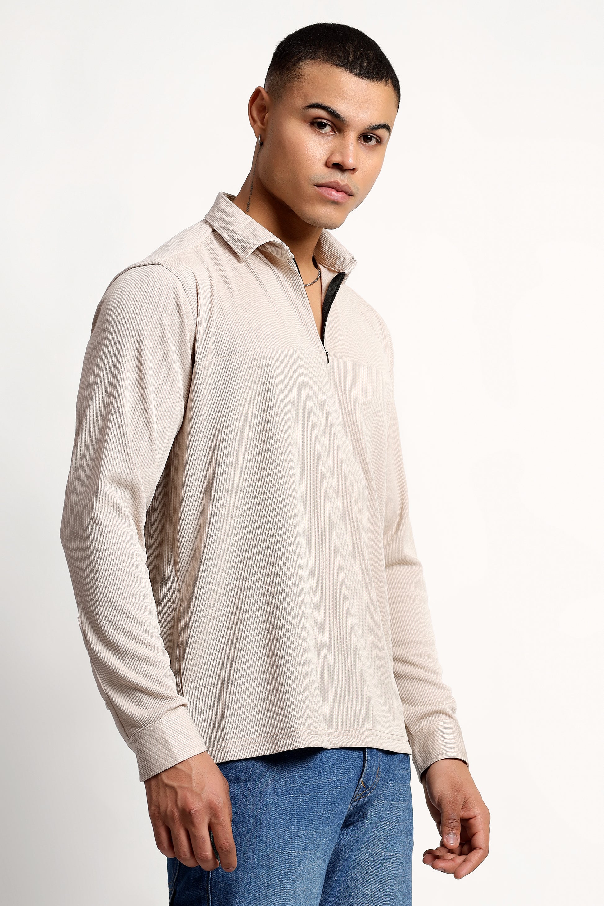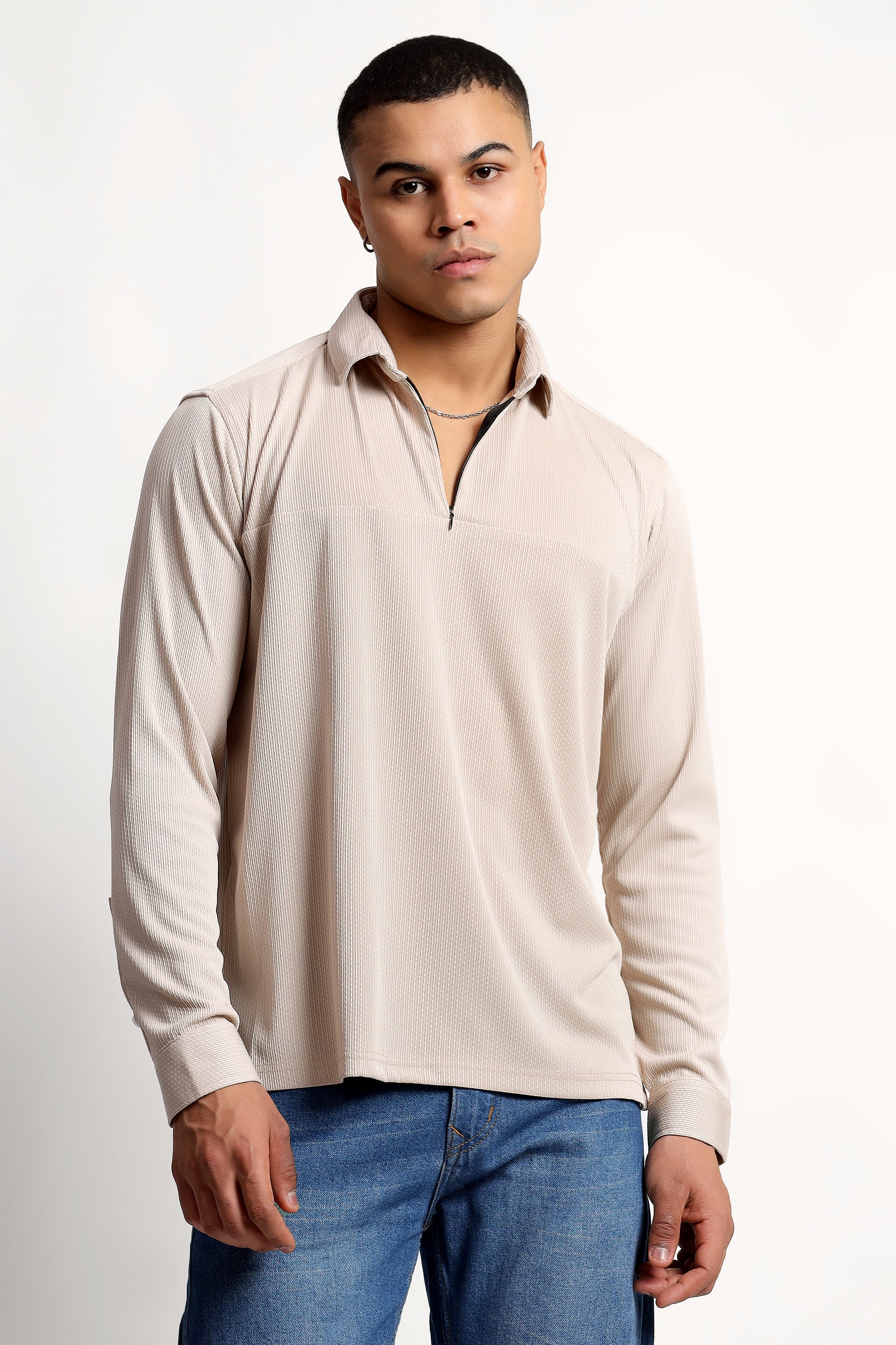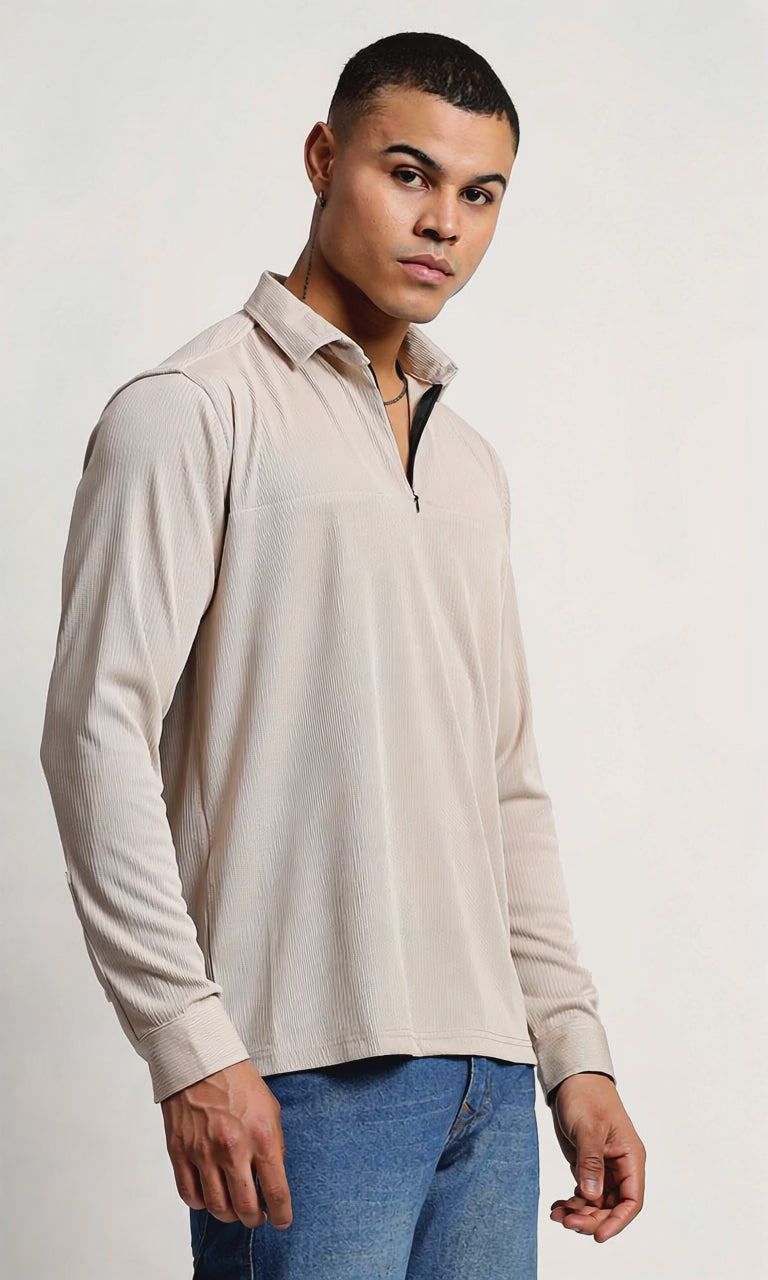 Regular Fit Half Zipper Light Beige Shirt