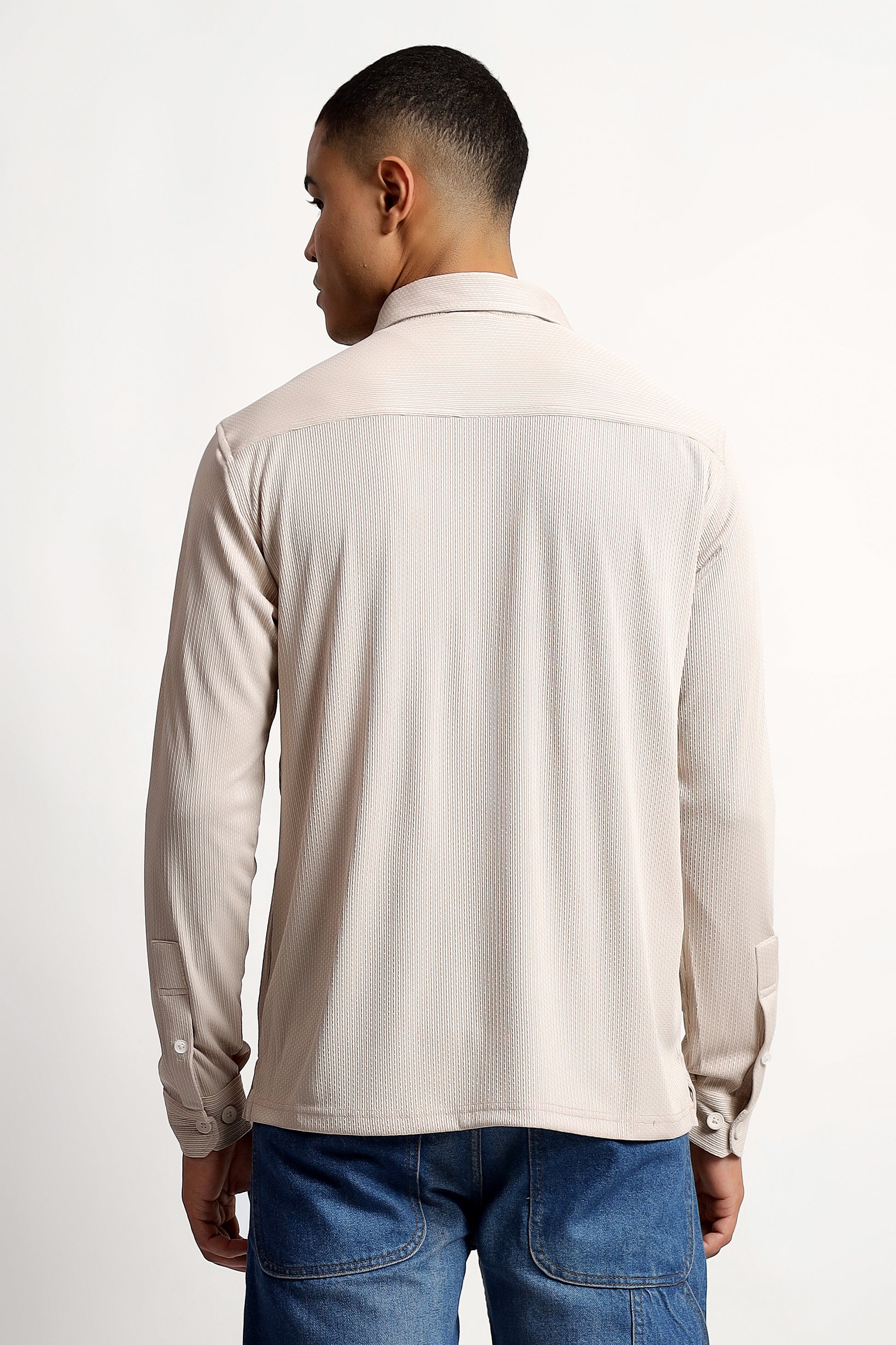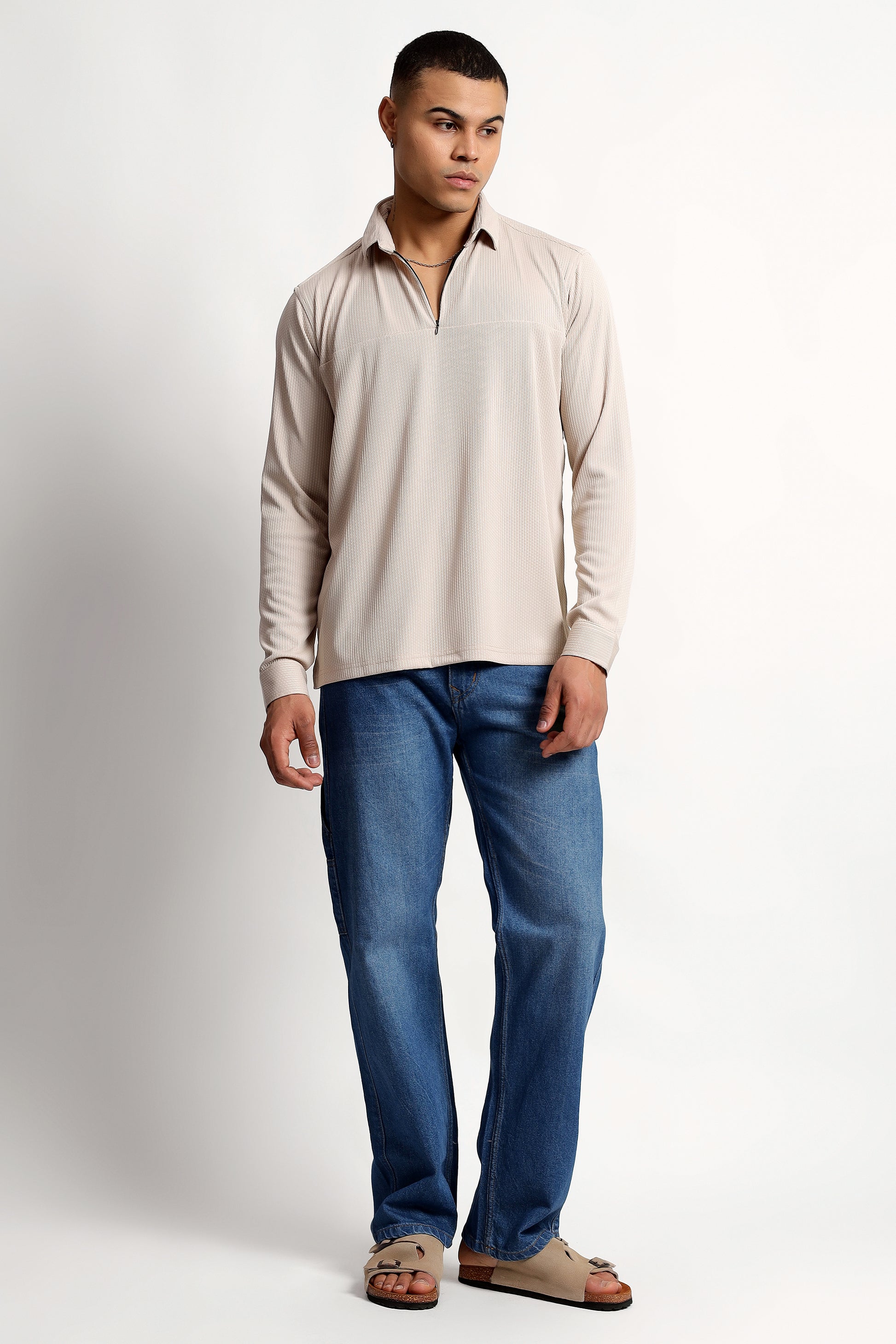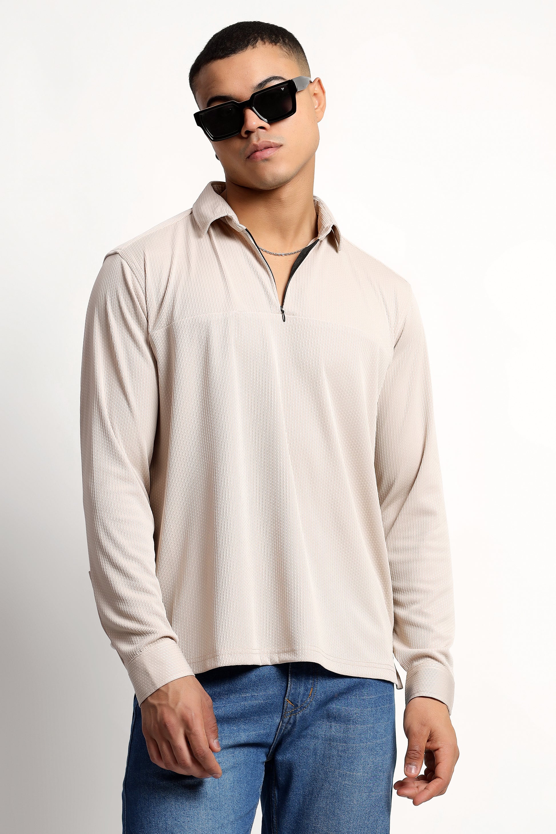 Regular Fit Half Zipper Light Beige Shirt