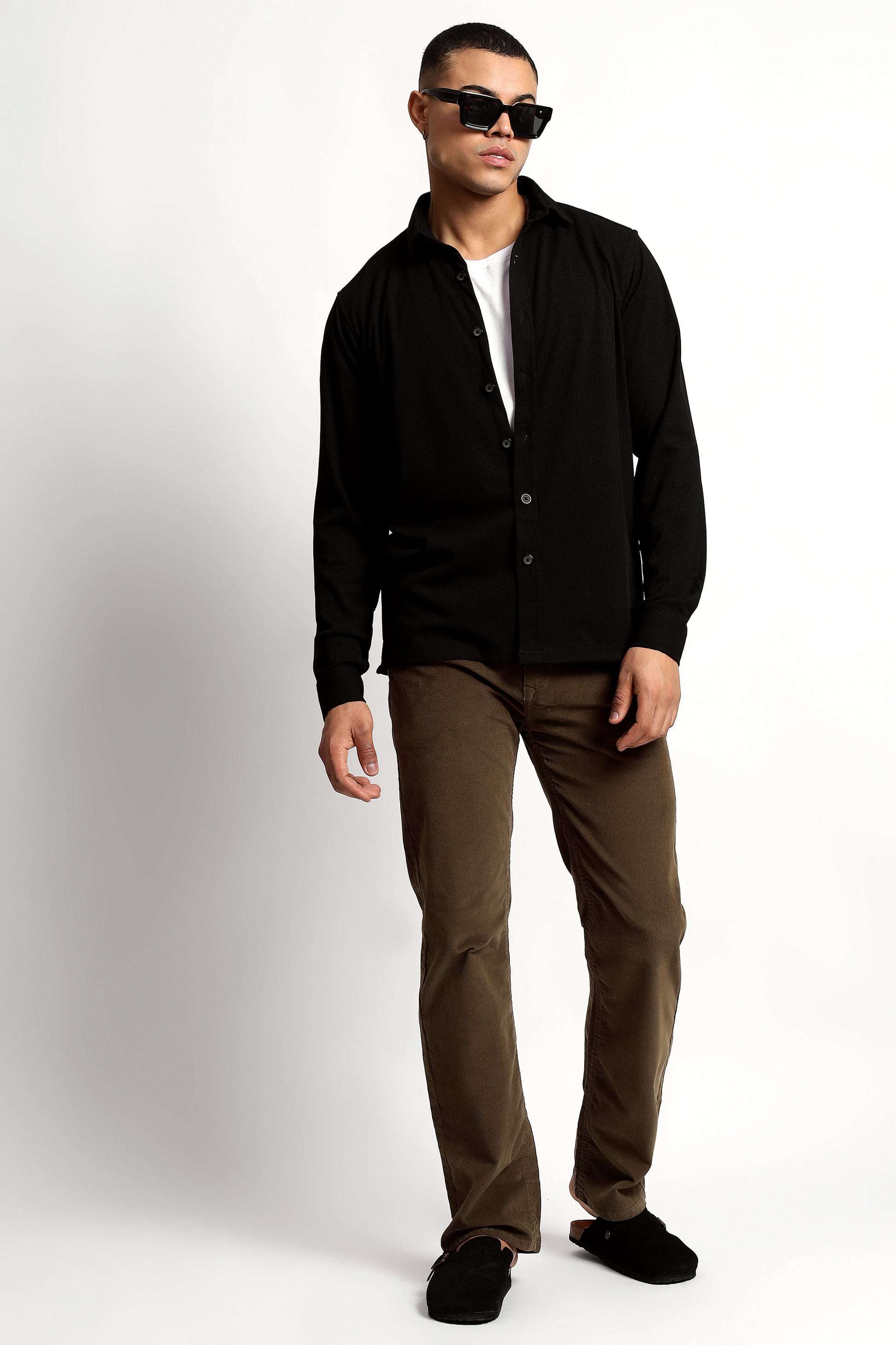 Step up your style game with the Mudih Men’s Regular Fit Black Shirt, crafted from a soft and durable polyester/cotton blend. This versatile shirt features a classic full button placket on the front, full sleeves with linked buttoned cuffs, and a sleek flat hem for a polished look. Ideal for both casual and formal occasions, the rich brown color adds a modern touch to any outfit.