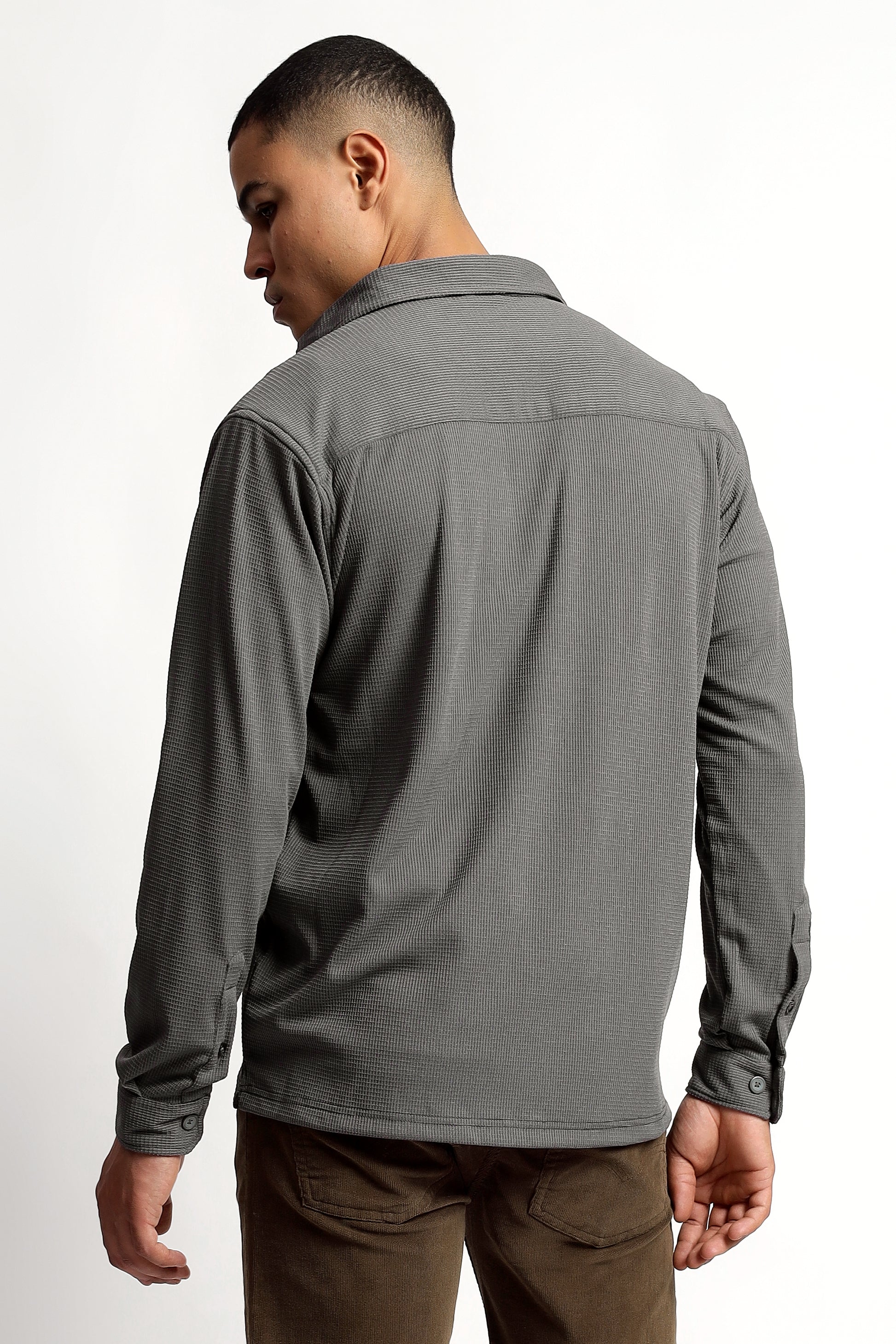 Regular fit Poly Cotton Grey Shirt